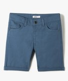 Bermuda garçon en coton twill uni à revers bleu horizon