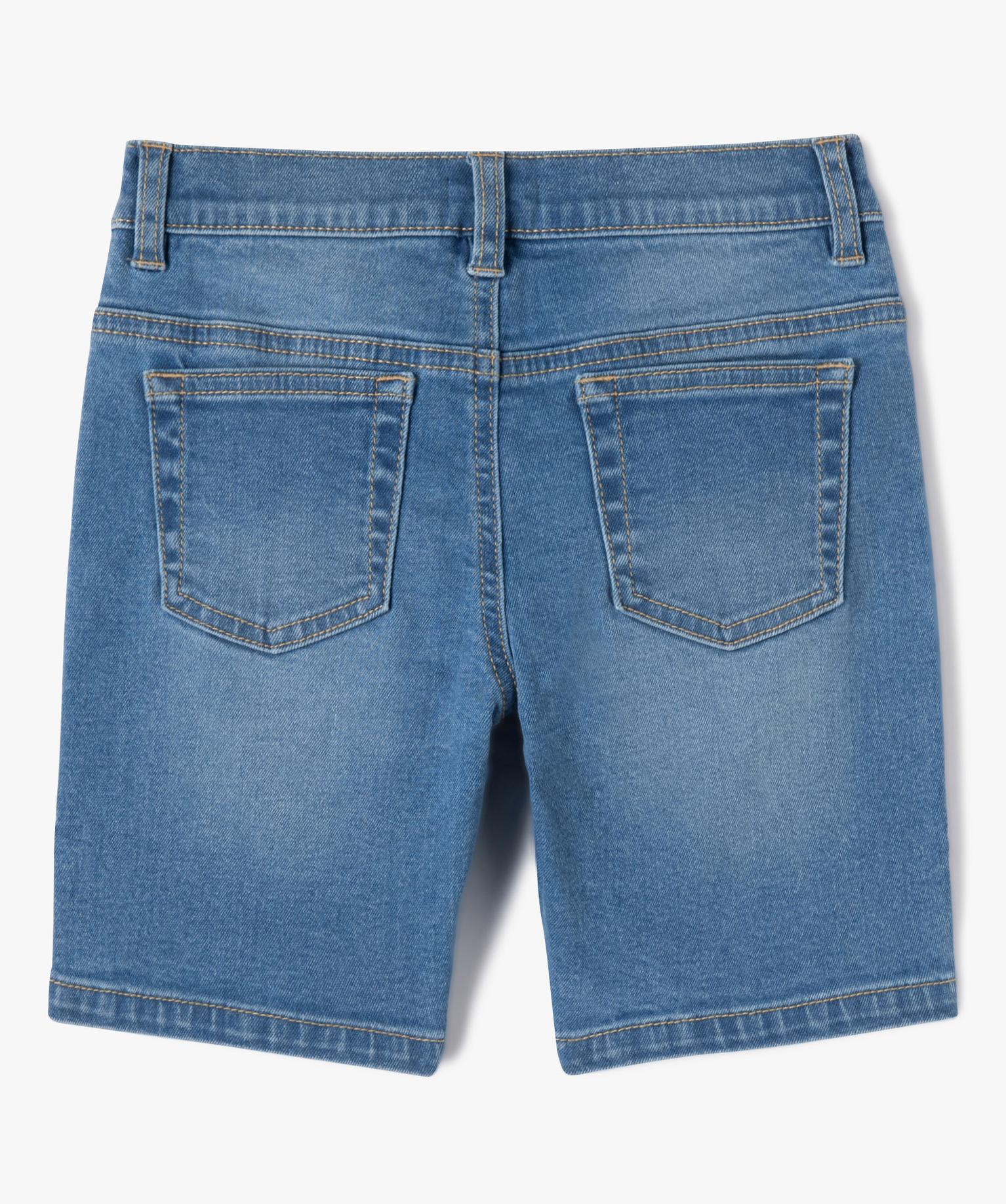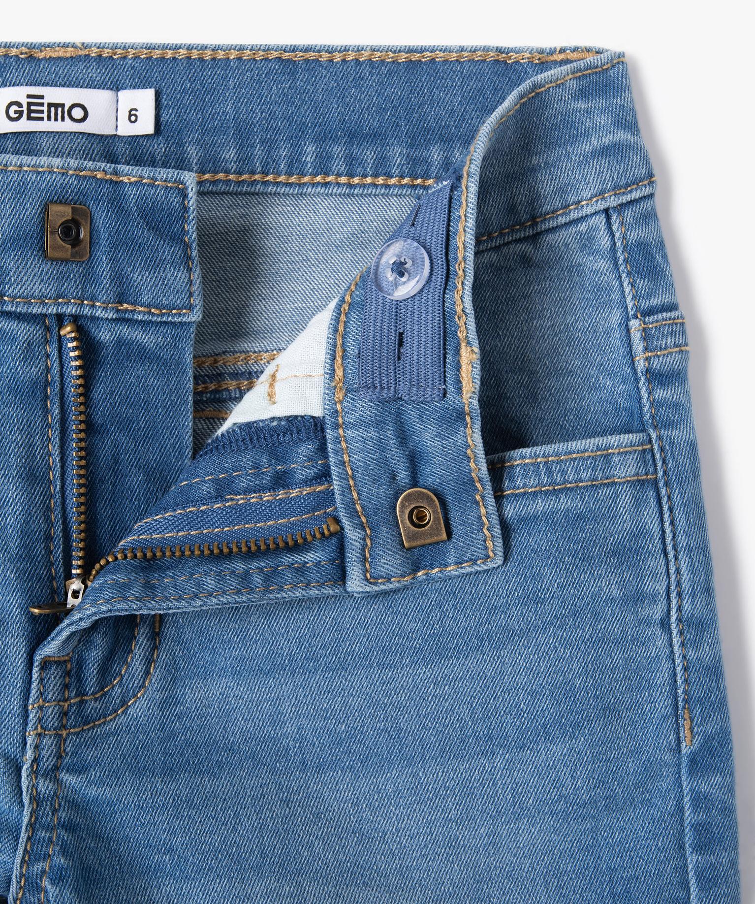 Le bermuda en jean fait partie des pièces indispensables du vestiaire estival des enfants. Confortable et pratique, il permet de composer de nombreux looks. Ce bermuda garçon affiche un léger délavage obtenu par un procédé plus respectueux de l’environnement. Sa matière extensible offre aux enfants un maximum d’aisance. Il possède trois poches sur l’avant et deux sur l’arrière. Sa ceinture s’adapte à la morphologie de chaque enfant grâce à un élastique dissimulé à la taille. Fermeture par zip et bouton.