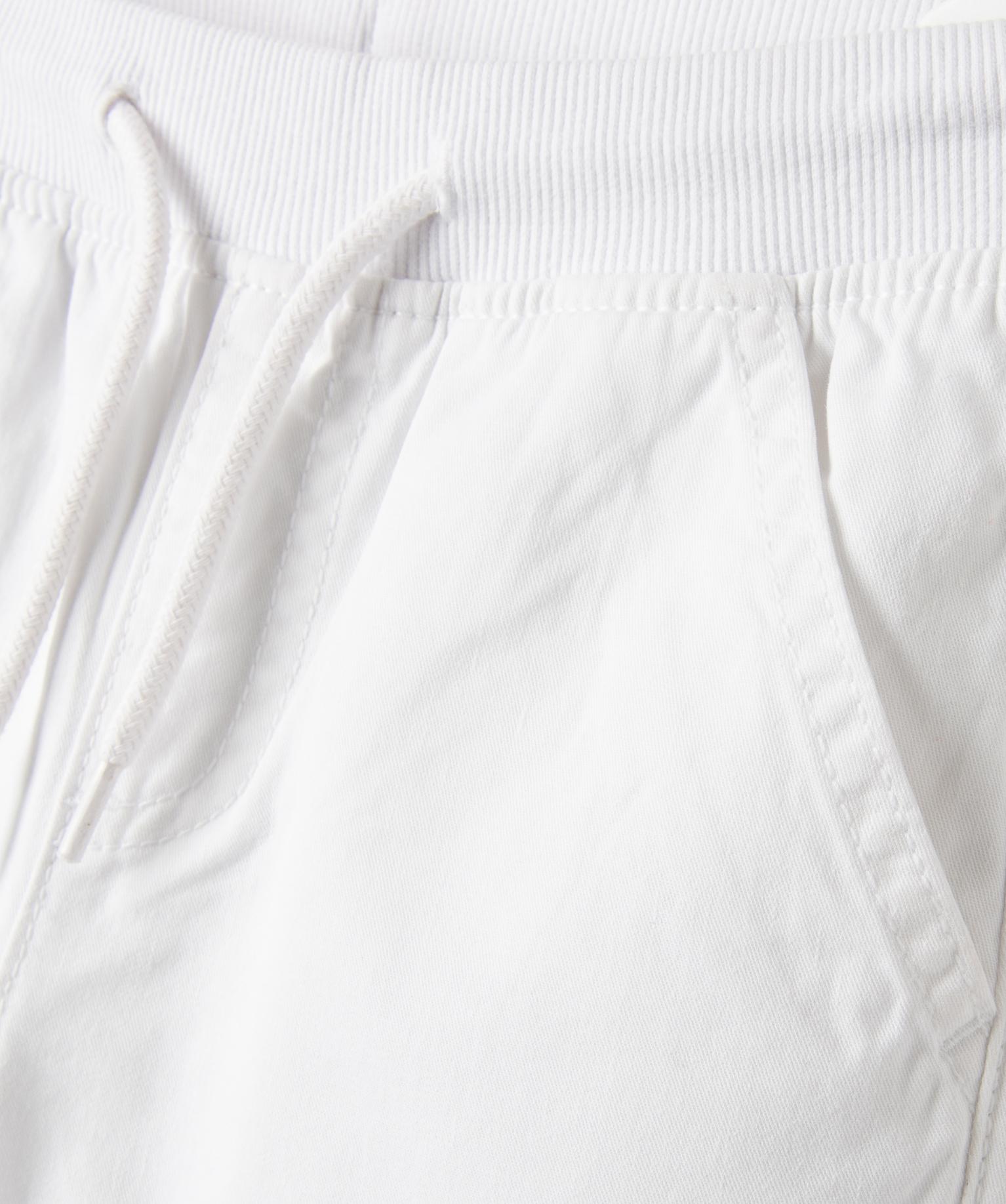 Bermuda garçon en twill de coton avec ceinture bord-côte blanc