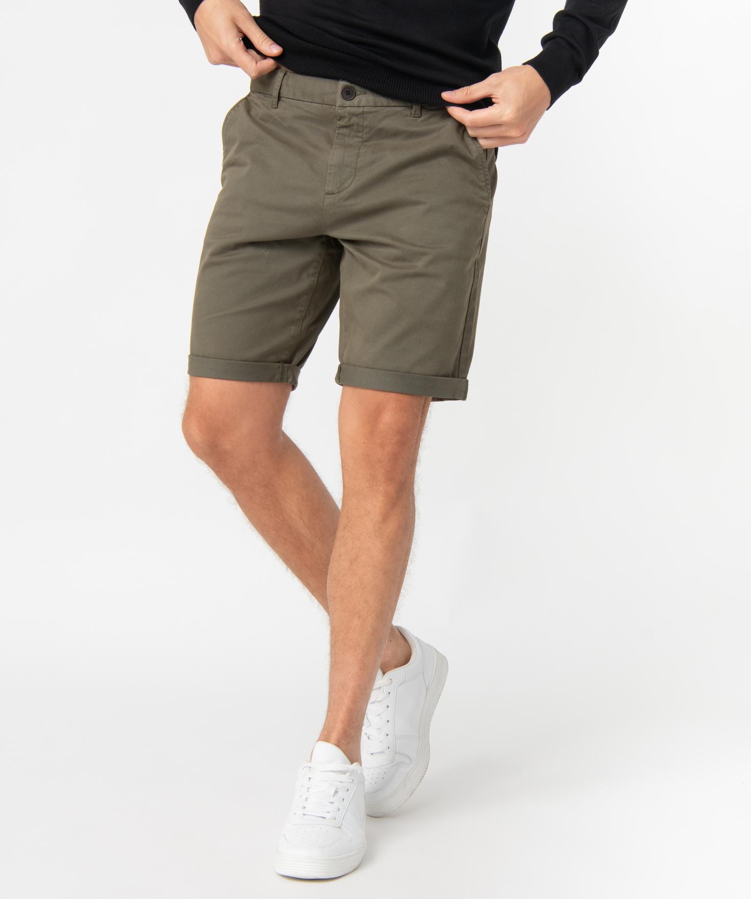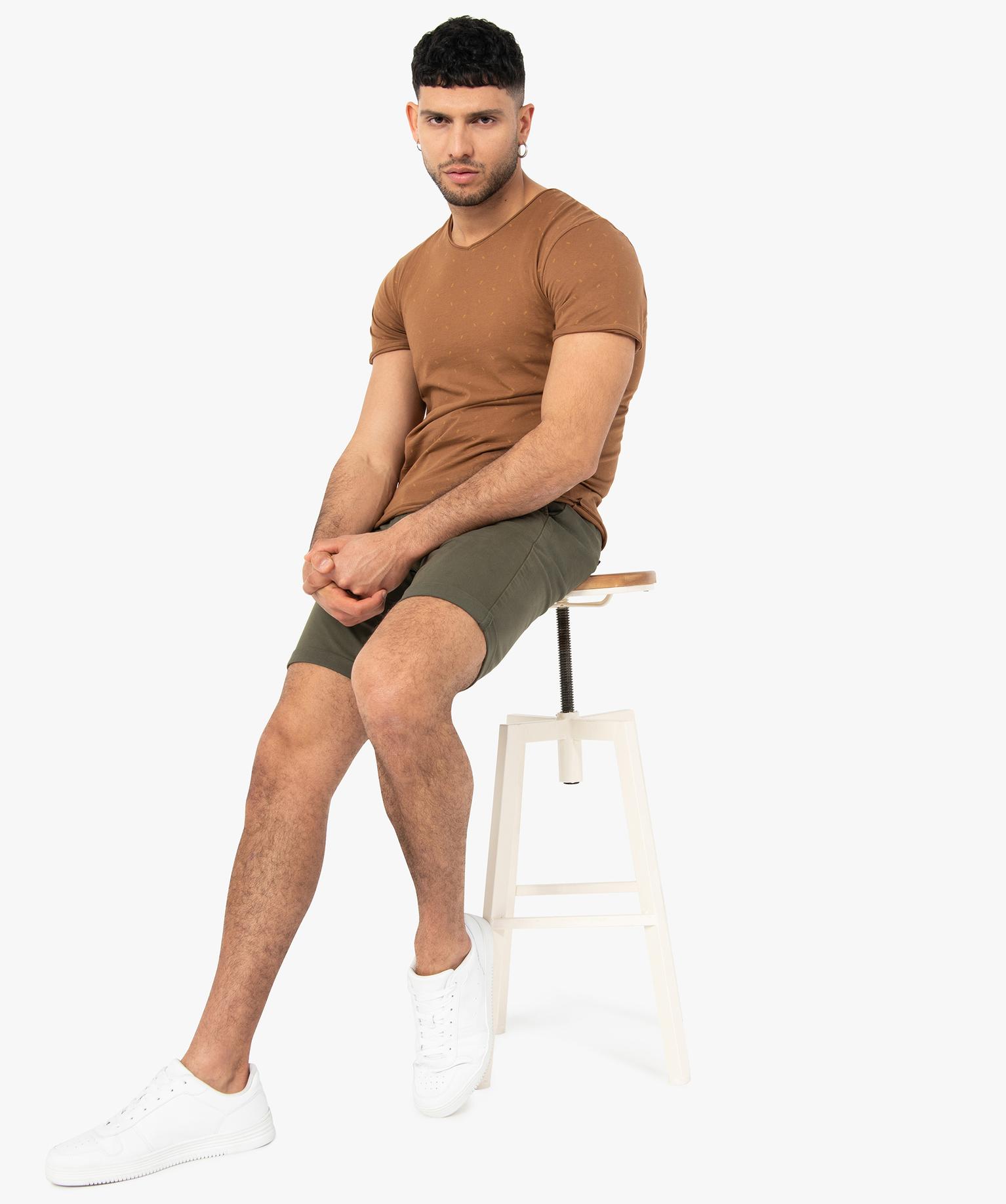 Bermuda homme en toile extensible 5 poches coupe chino vert kaki
