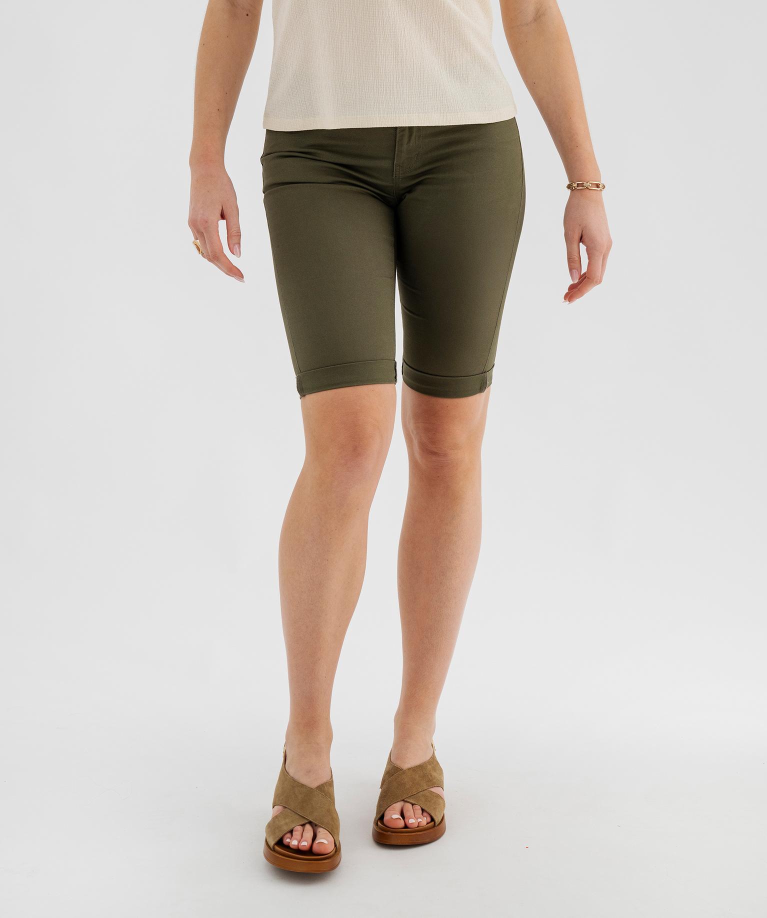 Bermuda slim en coton extensible femme vert fonce