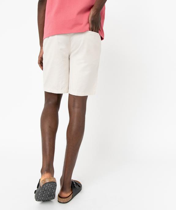 Rien de mieux qu’un bermuda en lin pour s’assurer une allure casual chic. Ce bermuda homme, confectionné en coton et lin, assure confort en toutes circonstances et une allure élégante. Il possède une ceinture élastique réglable par cordon coulissant pour un ajustement idéal. Un bermuda ample doté de deux poches raglan sur les côtés et de deux poches passepoilées au dos. Il se porte en ville comme en bord de mer avec un tee-shirt ou une chemise en lin. Fermeture par zip et bouton.