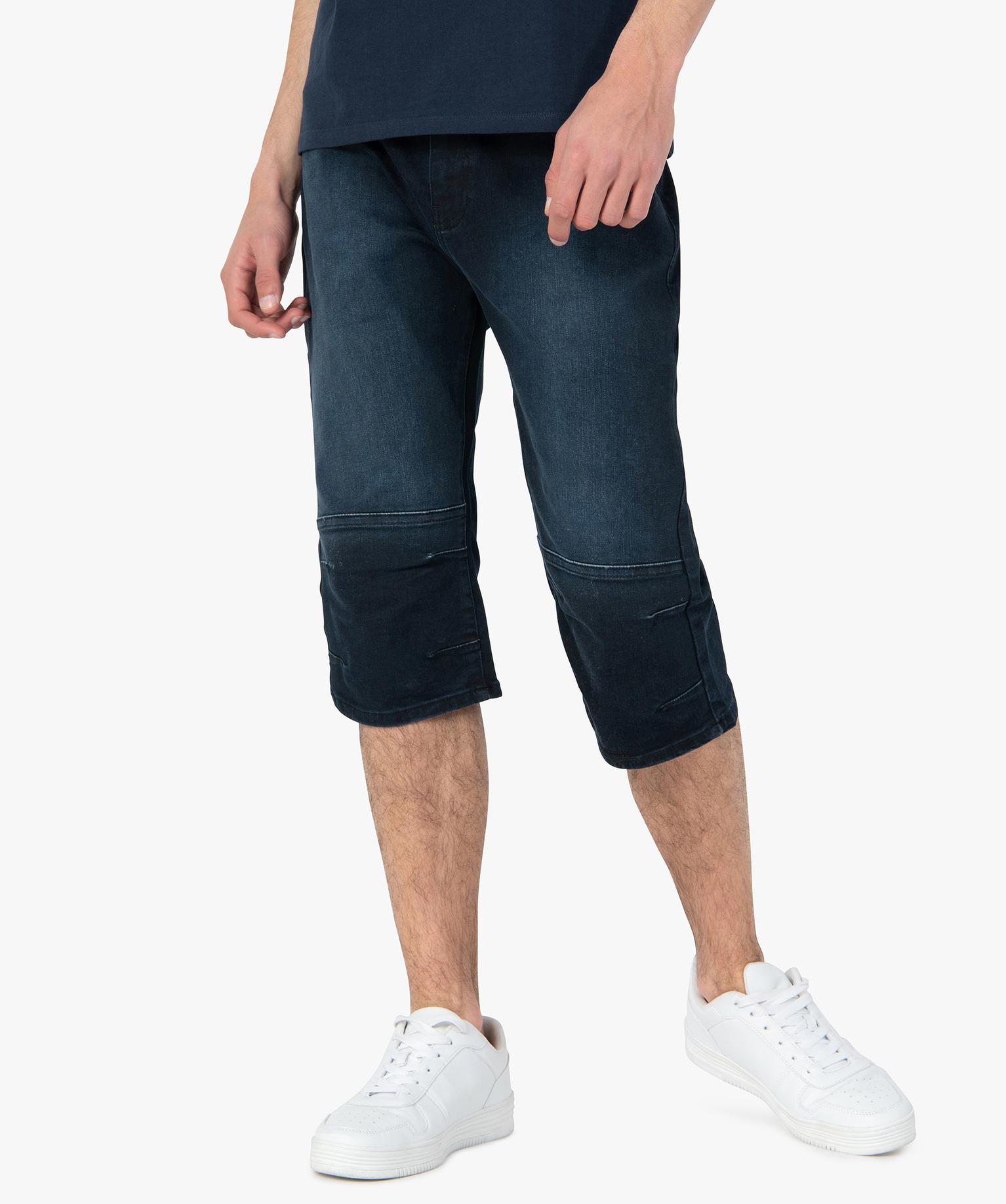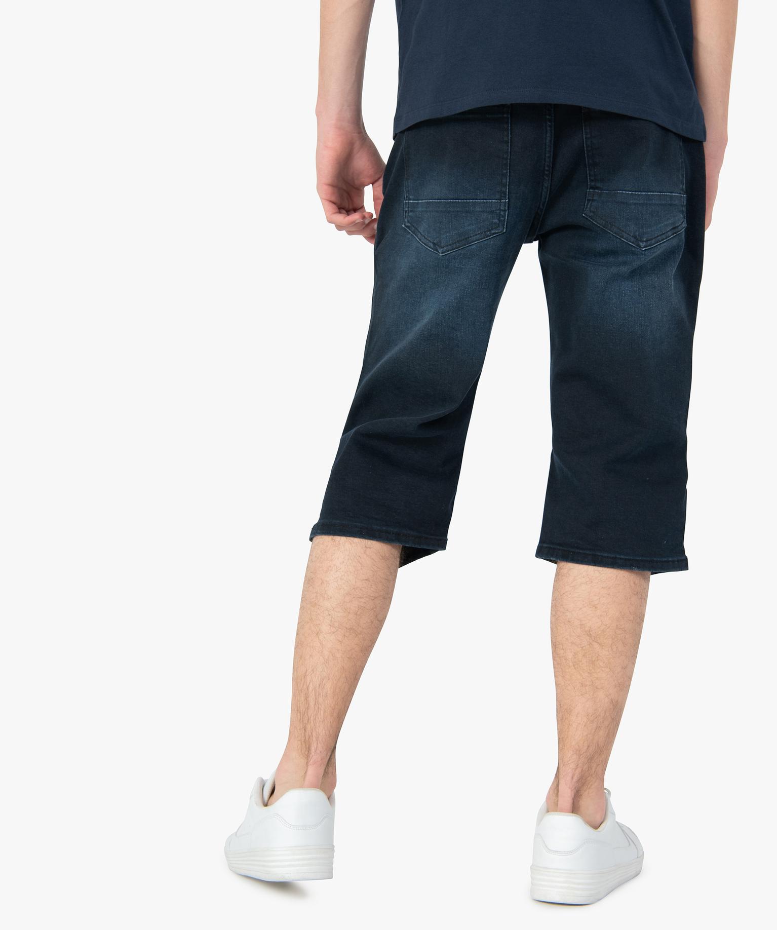 Bermuda/pantacourt homme en jean légèrement délavé bleu fonce