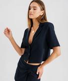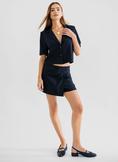 Ce blazer à manches courtes incarne l’élégance moderne avec sa coupe courte et ajustée. Confectionné dans une matière texturée souple et extensible, le blazer femme assure confort et liberté de mouvement. Son col tailleur classique se marie parfaitement aux fines épaulettes qui structurent la silhouette avec subtilité. La boutonnière en écaille imitation apporte une touche raffinée à l'ensemble et permet un porté ouvert comme fermé. Un blazer d'été court, idéal pour rehausser vos looks professionnels ou une jolie robe de cérémonie.