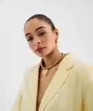 Ce blazer en viscose et lin revisite l’élégance classique de la veste de tailleur avec une couleur douce et lumineuse, parfaite pour apporter fraîcheur et raffinement à une tenue. Sa coupe cintrée, ses épaulettes discrètes, son col tailleur et sa doublure satin assurent une allure et une finition impeccables. La veste femme se ferme par un bouton recouvert et possède de deux poches passepoilées. Une pièce idéale pour accompagner un pantalon habillé, une robe printanière fluide ou même un jean pour un style moderne.