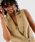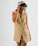 Blazer sans manches à patte pressionnée femme beige fonce