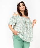 Blouse à bretelles et col Bardot femme grande taille vert clair