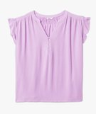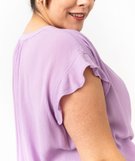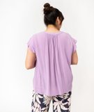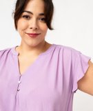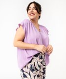 Une jolie blouse à manches courtes qui séduit par sa matière fluide à l’aspect subtilement froissé. Elle est agrémentée de petits volants au bord des manches et d’un joli décolleté en V qui se poursuit par trois petits boutons métalliques. Cette blouse femme grande taille (du 46 au 54) affiche une coupe ample accentuée par une bande smockée avec fronces sur l’avant des épaules et dans le dos. Cette jolie blouse ajoute une belle touche de féminité à tous les bas du dressing.