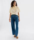 Blouse à manches courtes avec volants sur le col femme jaune clair
