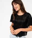 Blouse à manches courtes en maille gaufrée scintillante femme[MISSING] noir