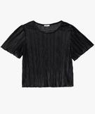 Blouse à manches courtes en maille gaufrée scintillante femme noir