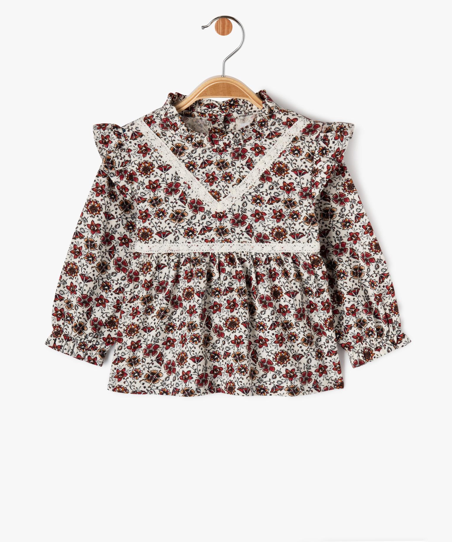 Blouse à manches longues à motifs fleuris bébé fille - LuluCastagnette ecru