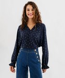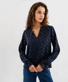 Blouse à manches longues à motifs pailletés femme bleu marine