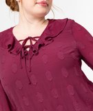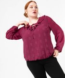 Blouse à manches longues avec col à volant femme grande taille bordeaux