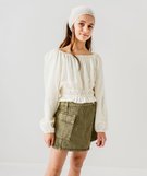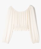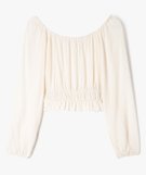 Blouse à manches longues coupe courte avec col modulable fille blanc chine