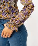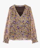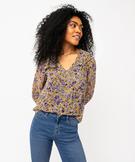 Blouse à manches longues en voile à motifs fleuris femme violet