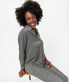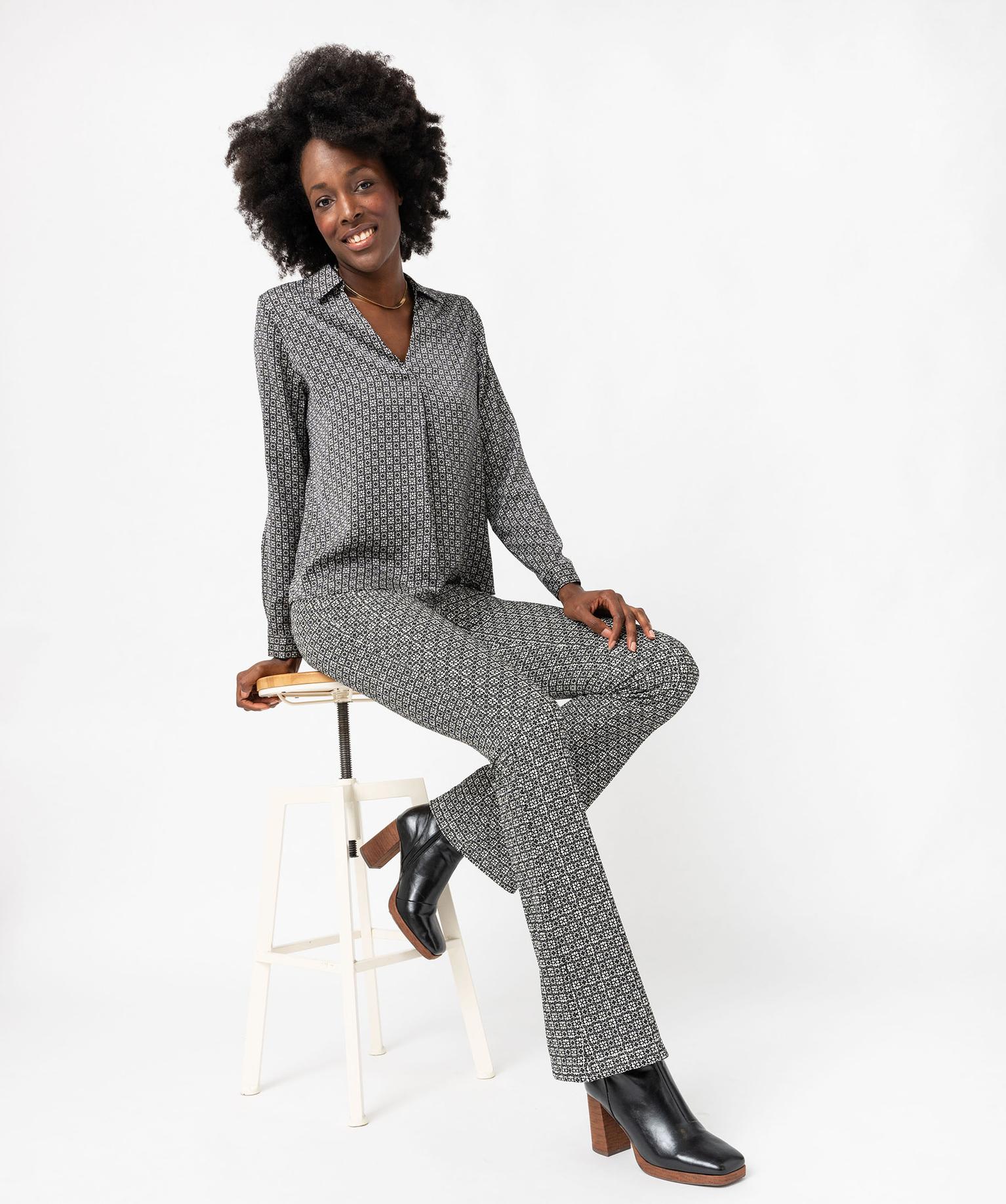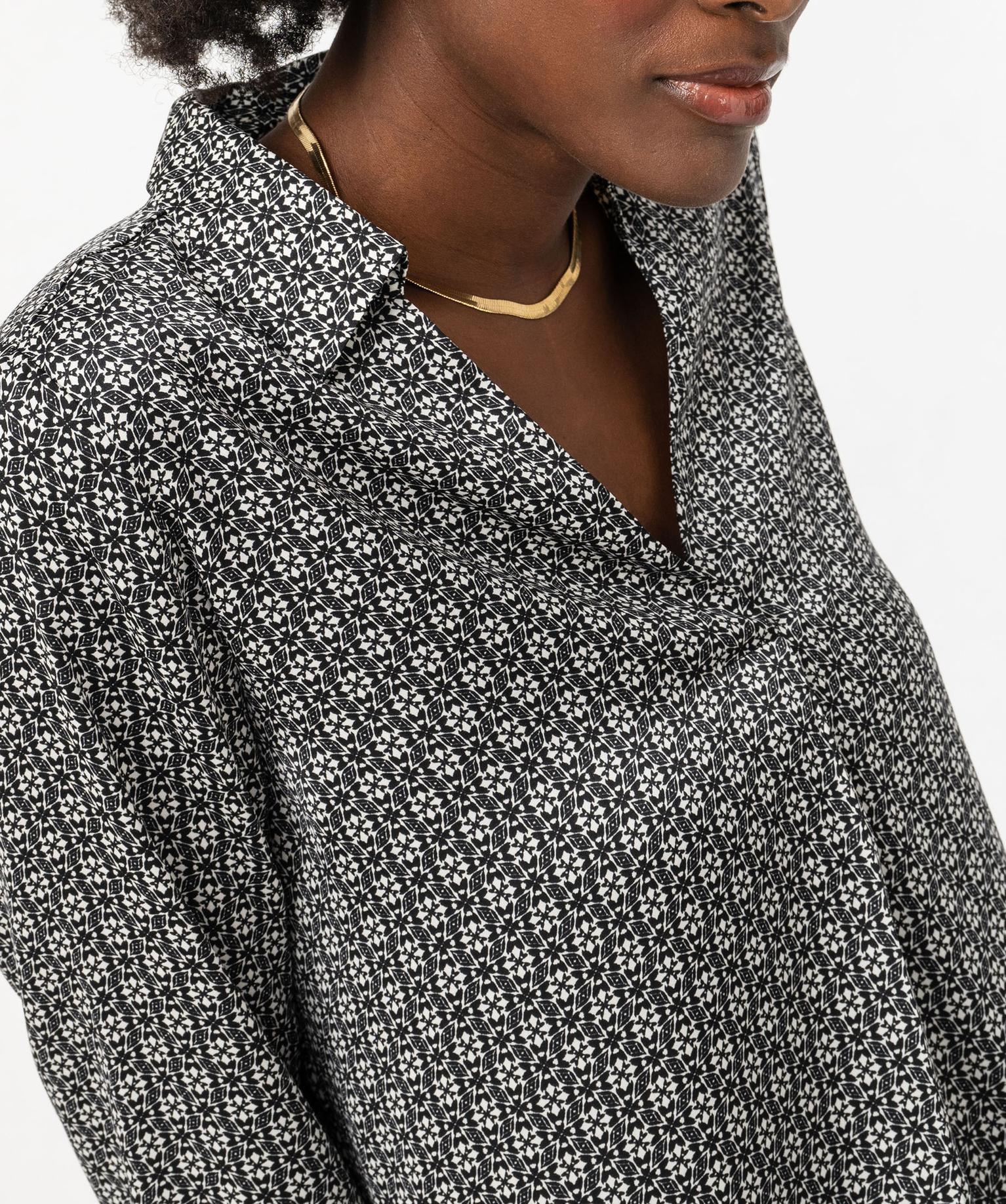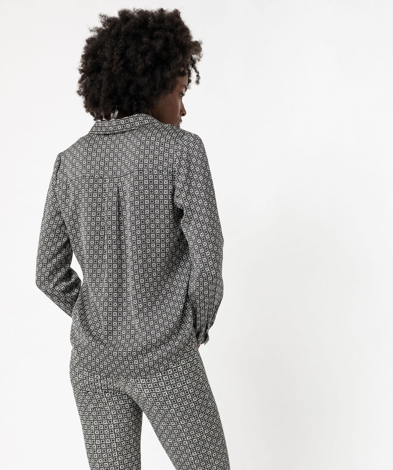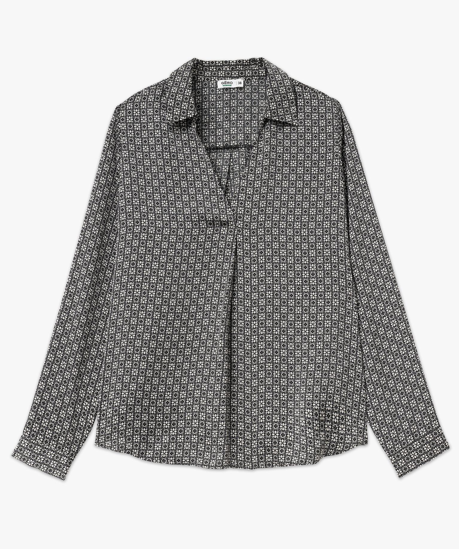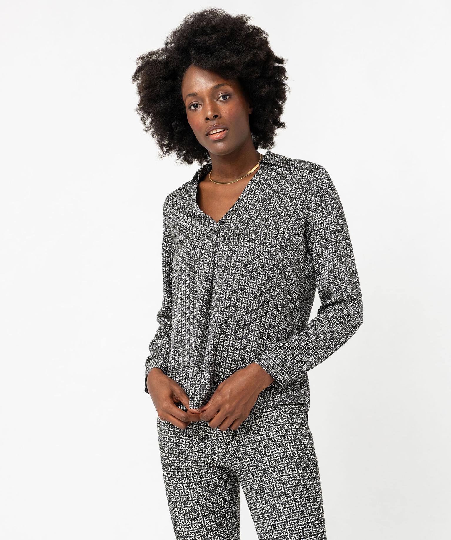 Blouse à manches longues imprimée en matière fluide femme noir