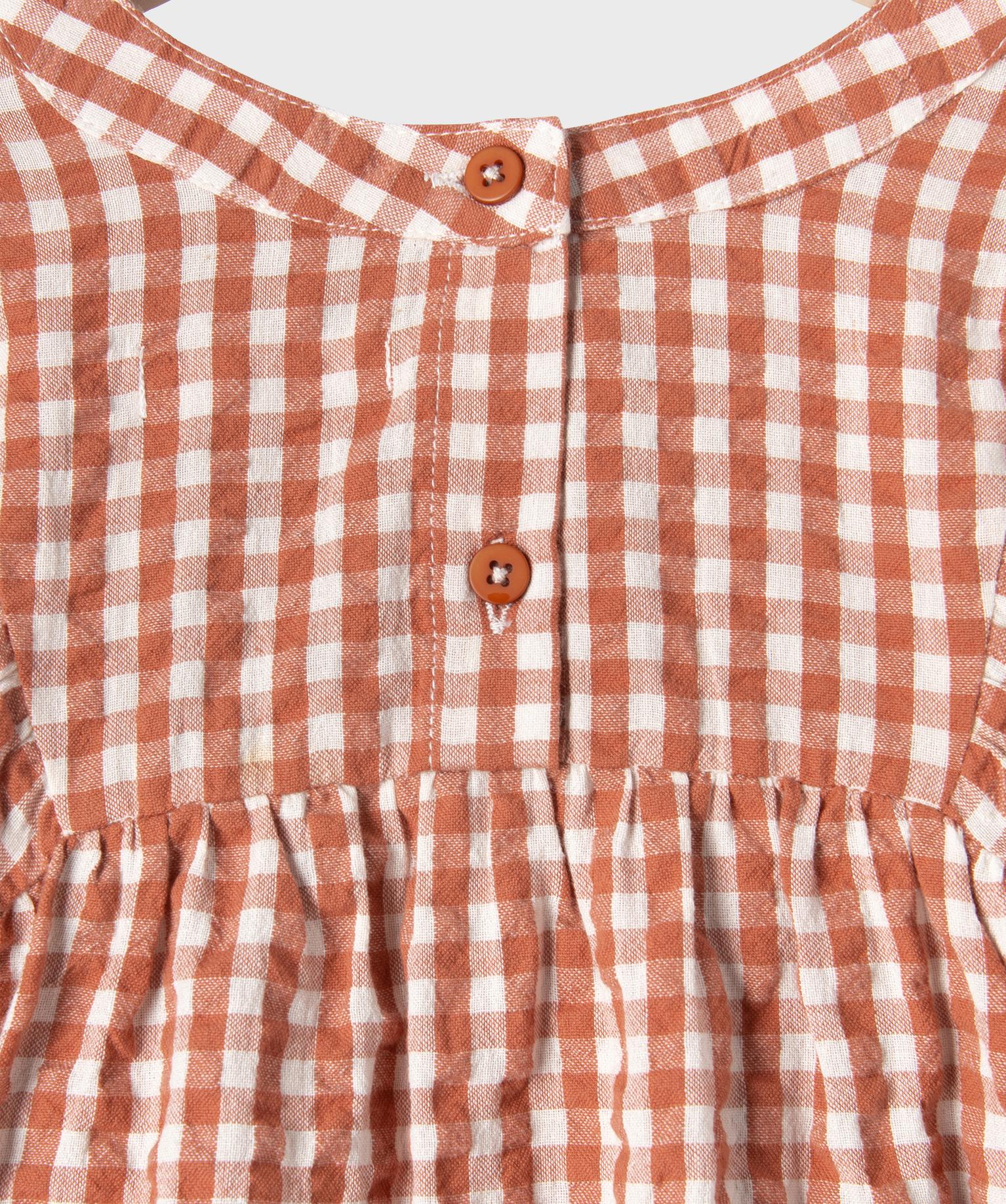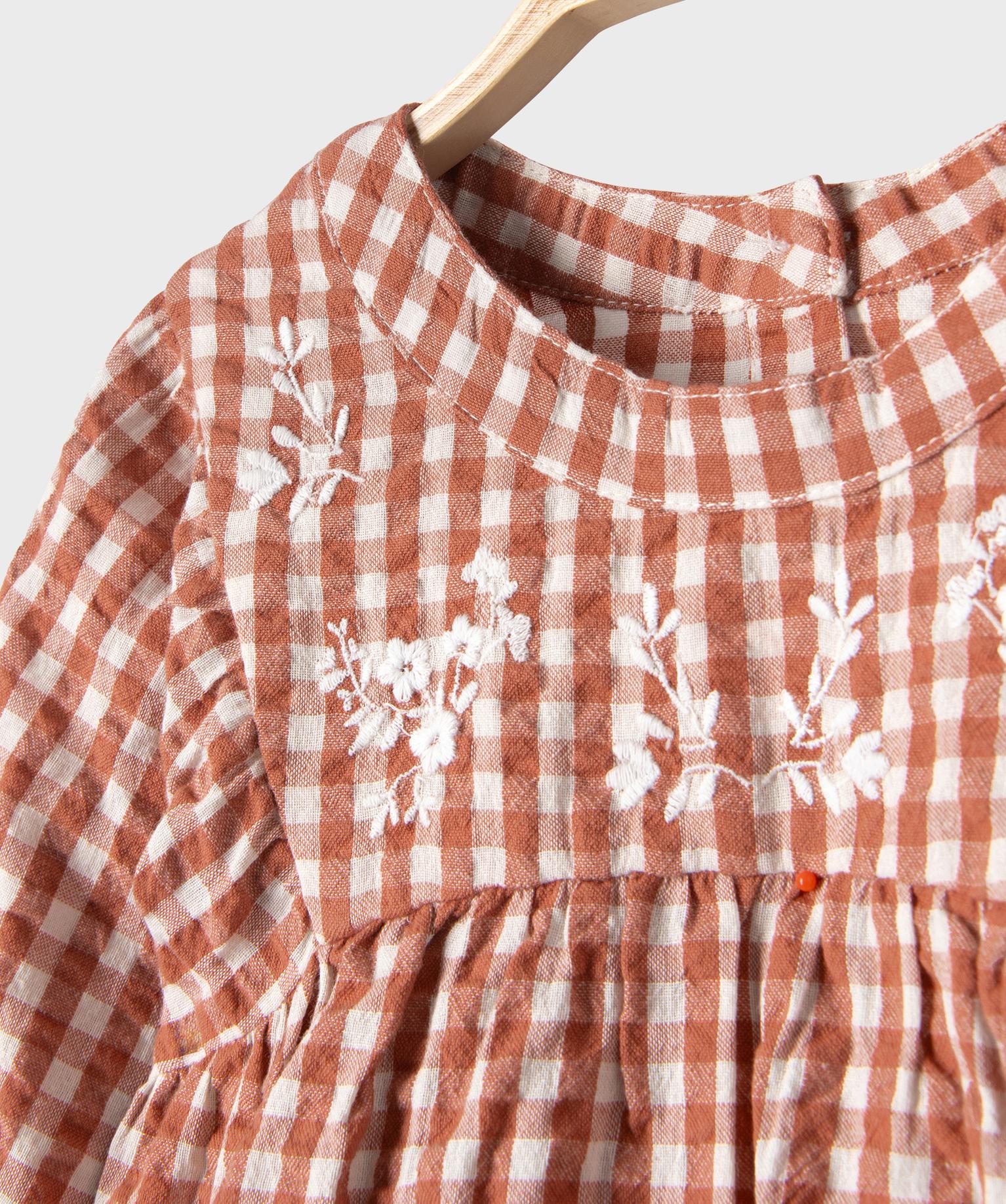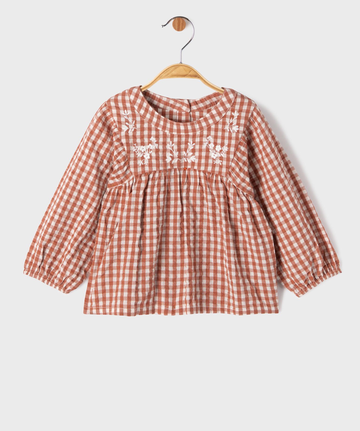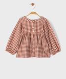 Blouse à motif vichy en maille gaufrée bébé fille marron