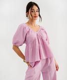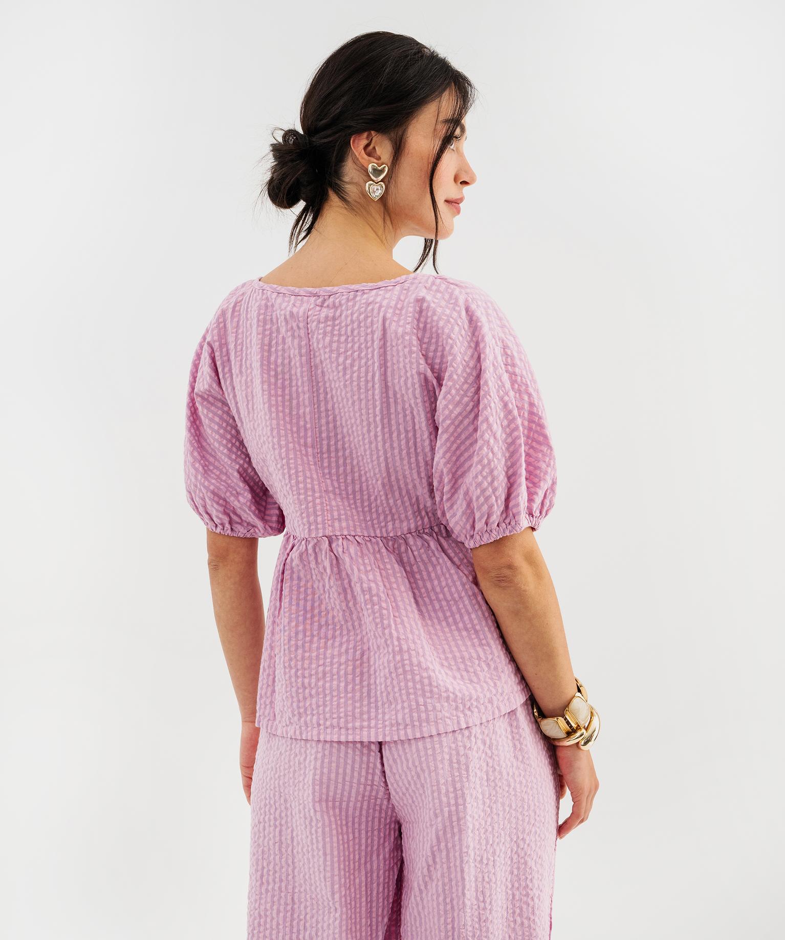 Craquez pour cette blouse ample pour femme au charme bohème et à l’allure décontractée. Confectionnée en toile de coton gaufrée douce et légère, elle offre un confort optimal au quotidien. Son col en V met délicatement le décolleté en valeur, tandis que ses emmanchures chauve-souris apportent une belle ampleur et une grande liberté de mouvement. Ornée de rayures, cette blouse en coton se distingue par ses manches courtes resserrées par un élastique et par sa découpe empire sur le devant, qui souligne subtilement le buste. Cette blouse rayée se porte aussi bien avec un pantalon ample assorti pour un ensemble coordonné tendance qu’avec un short jean pour un look estival d’inspiration hippie.