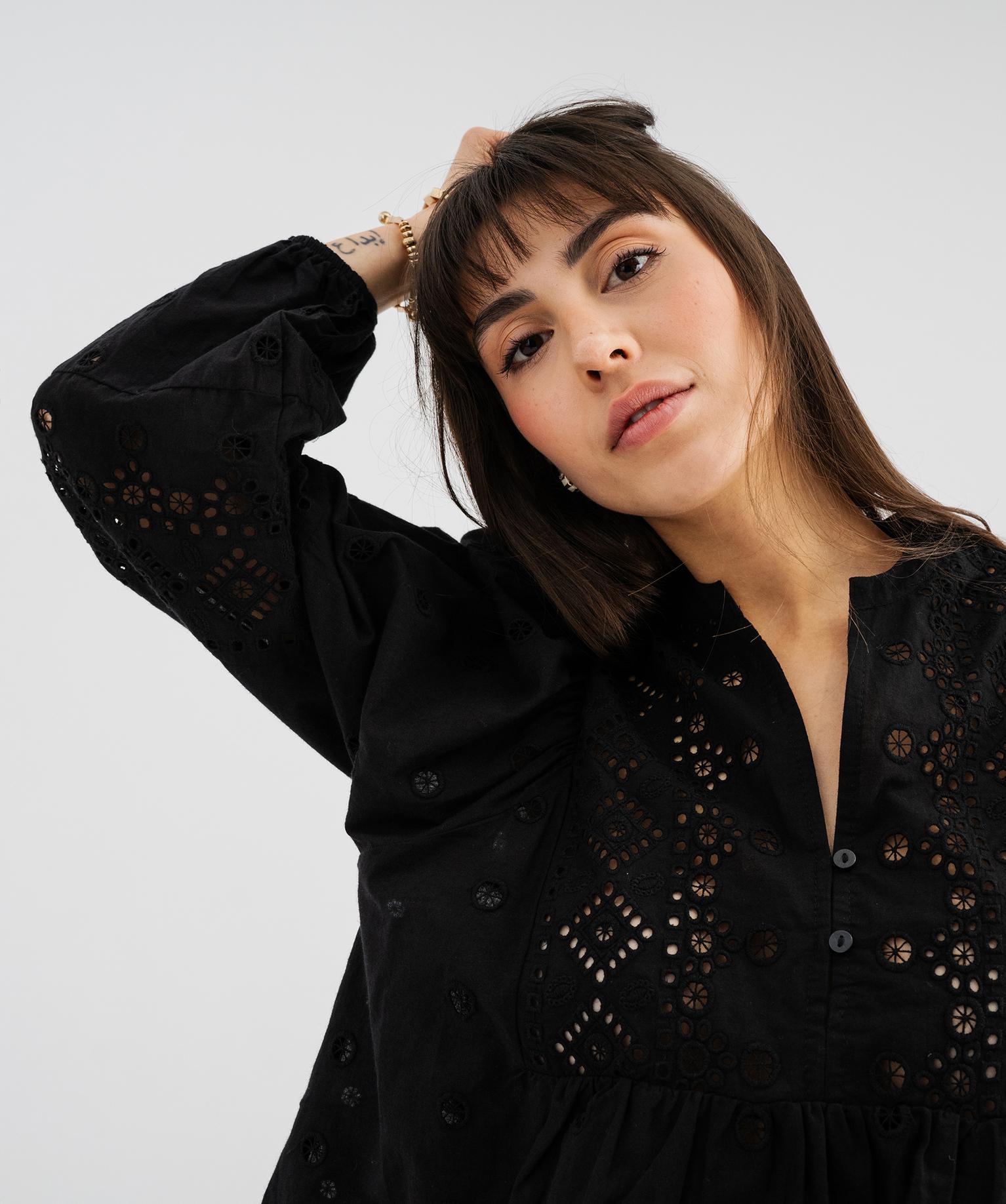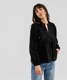 Cette chemise brodée, largement inspirée de la tendance hippie, est idéale pour composer les looks bohème. Confectionnée en coton, elle offre une grande douceur et reste confortable à porter toute la journée. Cette chemise femme possède de larges manches froncées aux épaules et resserrées aux poignets par un élastique, tandis qu’un large volant dans le bas crée un bel effet aérien. Elle possède un col rond avec ouverture en V fermée par deux petits boutons. Une blouse bohème à porter avec un jean flare ou une jupe longue.