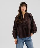 Blouse brodée à manches longues femme marron fonce