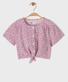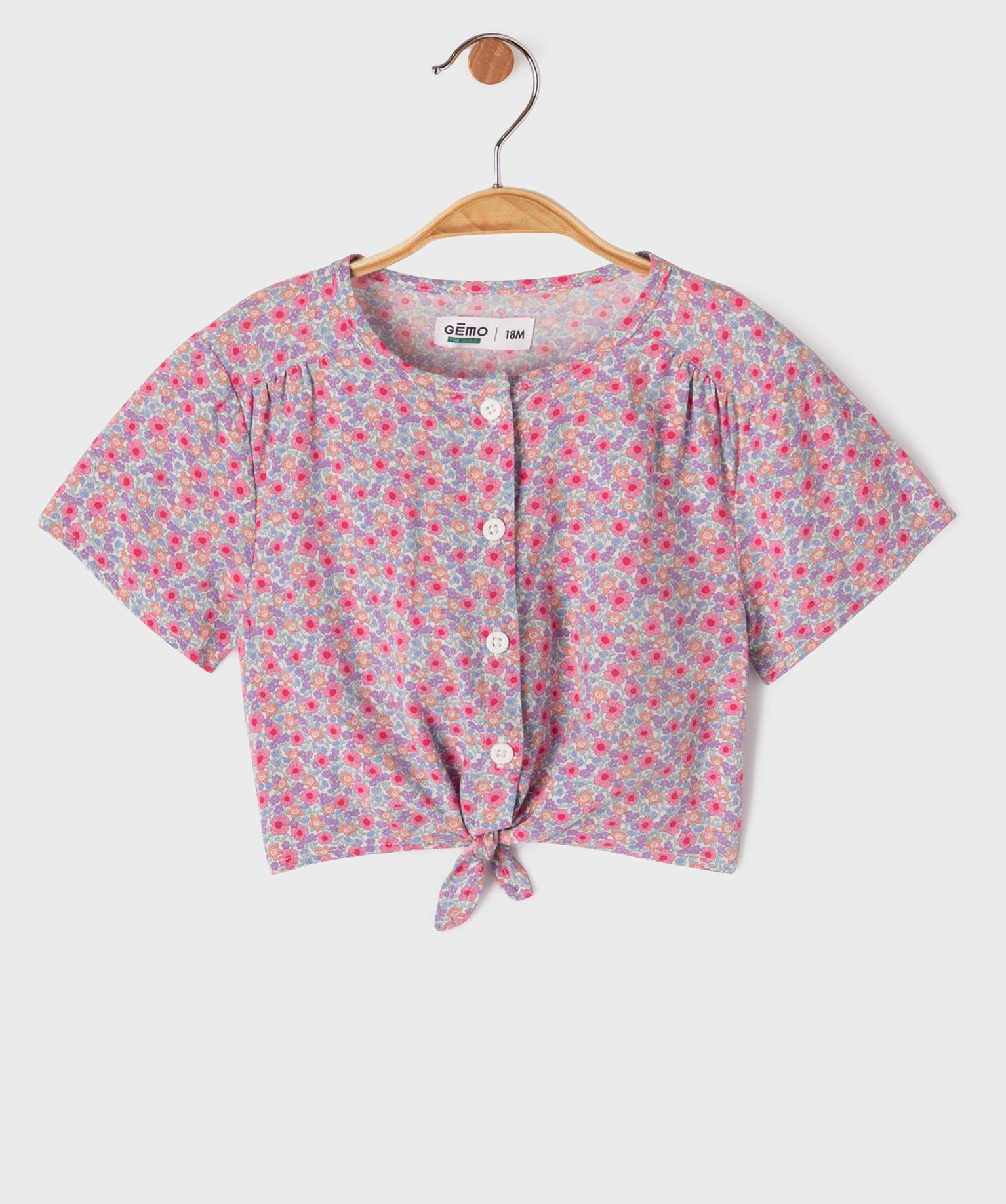 Blouse courte à manches courtes en viscose fleurie bébé fille rose