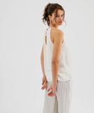 Laissez-vous séduire par le raffinement et le charme de cette blouse femme sans manches ! Une blouse en satin, aux emmanchures américaines (découpées haut sur l'épaule). Un lien au ras du cou permet d'ajuster les fronces du décolleté et de fermer le top dans le haut du dos. La blouse présente une forme droite et une longueur standard, magnifiée par sa matière satin douce et extra fluide ! Un top élégant à porter avec un pantalon de soirée, ou pour twister votre jean fétiche ! Fente dans le haut du dos.