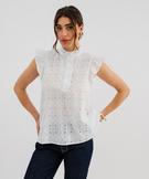 Offrez-vous un look romantique et vintage grâce à cette jolie blouse pour femme en coton décorée de jolies broderies ajourées. Une blouse sans manches agrémentée de volants aux emmanchures flottant sur les épaules et d’un col victorien délicatement froncé, fermé par des petits boutons aux reflets nacrés. Cette blouse ample, légèrement transparente, se porte sur une jolie brassière ou un top à bretelles, avec une jupe longue pour un look résolument rétro. Fronces dans le dos.