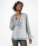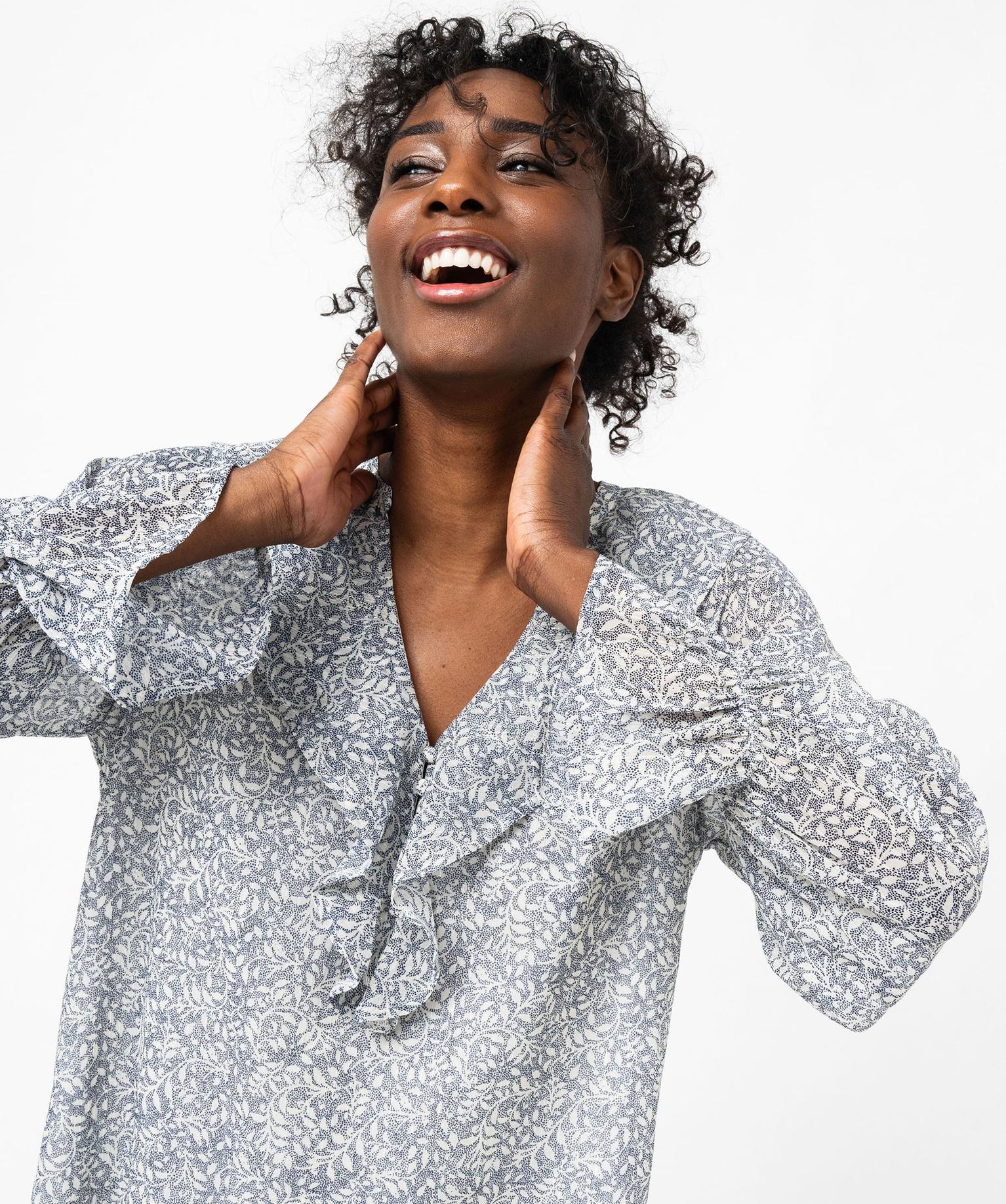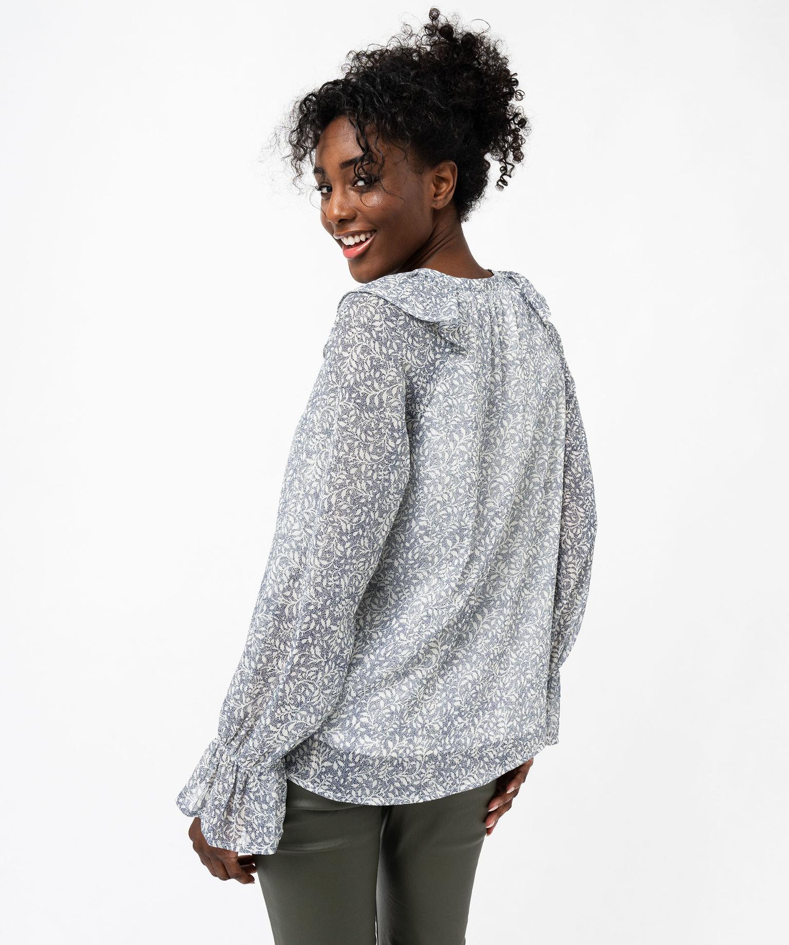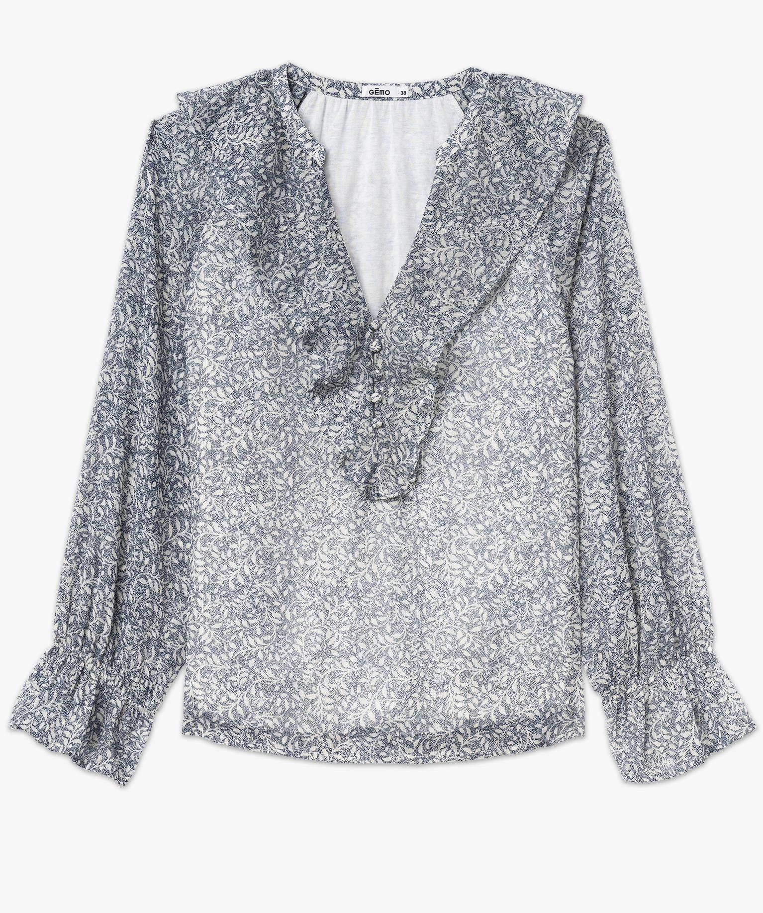 Pour un look ultra féminin, adoptez cette ravissante blouse imprimée. Confectionnée en voile léger et fluide, elle se distingue par son élégant décolleté en V volanté et ses subtiles rayures brillantes. Les manches longues de cette blouse pour femme, délicatement transparentes, laissant entrevoir les bras, sont agrémentées d'élastiques aux poignets pour créer des volants. Pratique, la blouse en voile est doublé devant et dos.
