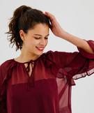 Blouse en voile à manches 3/4 et volants femme[MISSING] bordeaux