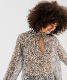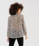 Sublimez votre féminité grâce à cette jolie blouse en voile subtilement transparente ornée de motifs variés selon les coloris. Une blouse femme dotée de larges manches resserrées aux poignets par un élastique et d’un col froncé avec décolleté en V agrémenté d’un cordon à nouer. Un top fluide ultra chic à porter sur un top à bretelles ou sur un joli soutien-gorge lors des soirées romantiques. Emmanchures raglan.