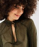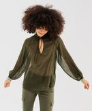 Sublimez votre féminité grâce à cette jolie blouse en voile subtilement transparente ornée de motifs variés selon les coloris. Une blouse femme dotée de larges manches resserrées aux poignets par un élastique et d’un col froncé avec décolleté en V agrémenté d’un cordon à nouer. Un top fluide ultra chic à porter sur un top à bretelles ou sur un joli soutien-gorge lors des soirées romantiques. Emmanchures raglan.