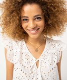 Craquez pour le charme romantique de cette blouse à manches courtes en broderie anglaise. Une blouse femme dotée d’un décolleté en V avec liens à nouer finitions pompons et petits volants sur les épaules. Cette blouse brodée affiche une coupe ample accentuée par de petites fronces sur le buste et dans le dos. Elle se porte avec une jupe longue ou un jean flare pour composer un look bohème chic.