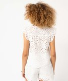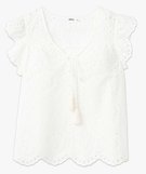Blouse femme à manches courtes en broderie anglaise blanc chine