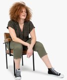 Cette blouse imprimée sera parfaite pour apporter une jolie touche de féminité à vos looks. Elle apporte en un clin d’œil une touche raffinée à tous les bas du dressing. Cette blouse pour femme grande taille (du 46 au 54) s’affiche dans une version manches courtes sans emmanchures avec encolure en V et fermeture par boutons recouverts sur l’avant. En fonction des coloris elle est ornée de motifs sobres ou pailletés. Elle se porte rentrée dans un pantalon ou ceinturée sur une jupe droite. Revers cousus en bas de manches. Pli ceux dans le milieu du dos.