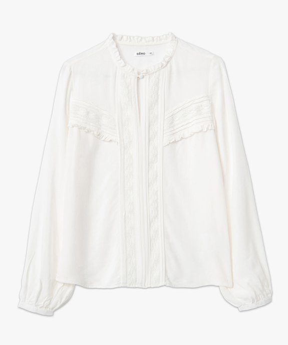 Blouse femme à manches longues avec empiècements dentelle ecru