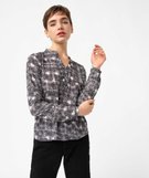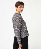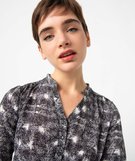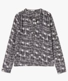 Indispensable au quotidien, la blouse pour femme à manches longues. Cette blouse imprimée, confectionnée dans une matière crêpe fluide offre un tombé impeccable et beaucoup de confort. Elle possède de nombreux détails féminins : encolure en V prolongée par 3 petits boutons, petites fronces aux épaules et dans le dos et finitions biais avec bouton aux poignets. Cette chemise fluide possède des manches retroussables grâce à une patte qui se fixe sur le bras à l’aide d’un petit bouton. Elle se porte aussi bien avec une jupe qu’avec un pantalon.