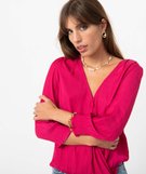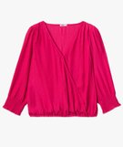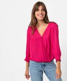 Blouse femme cache-cœur en satin imprimé ton sur ton rose