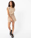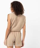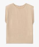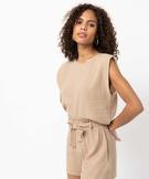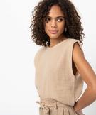 Blouse femme sans manches avec épaulettes en gaze de coton beige