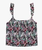 Le crop top fleuri à bretelles volantées est un must-have de l'été ! Aussi joli avec un short en jean qu'une jupe taille haute, cette blouse femme apporte beaucoup de féminité à vos tenues, sans compromis sur le confort. En effet, le top est réalisé dans une matière fine agréable à porter, entièrement couvert de smocks devant et dos ce qui le rend extensible. Finition roulottée à la base, biais à l'avant de l'encolure, élastiquée au dos.