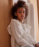 Blouse fille à manches longues et volants - LuluCastagnette blanc