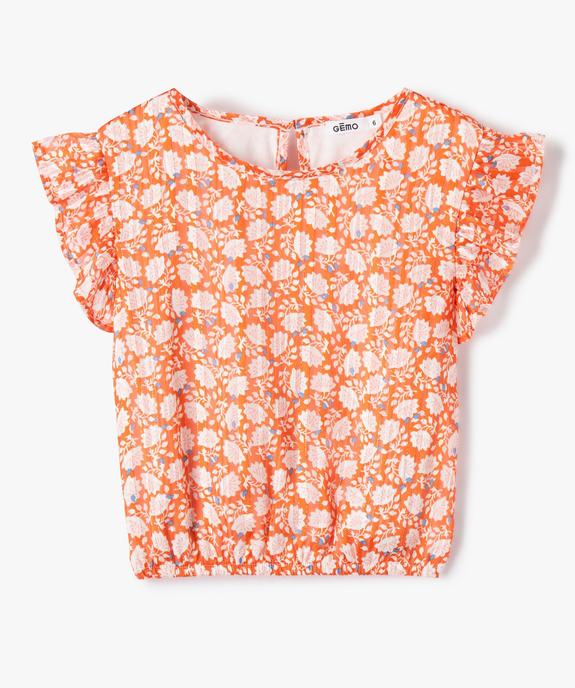 Blouse manches ballon à basque en viscose fleurie fille