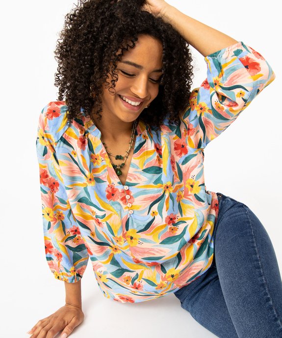 Blouse fluide imprimée à manches 3/4 femme multicolore