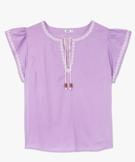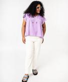 Blouse grande taille à manches courtes et broderies ethniques femme violet clair