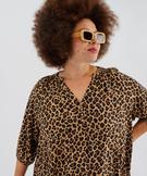 Blouse imprimée à manches 3/4 femme grande taille marron