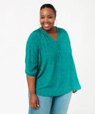 Blouse imprimée à manches 3/4 femme grande taille vert