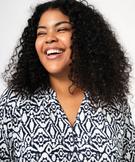 La blouse imprimée fait partie des pièces incontournables du dressing féminin. Pratique, facile à porter et très élégante, elle se porte aussi bien avec un jean qu’avec un pantalon en toile ou une jupe. Cette blouse pour femme grande taille (du 46 au 54) se distingue par sa composition en viscose fluide tellement confortable. Elle possède un col V prolongé par quatre petits boutons et de larges manches 3/4 avec emmanchures raglan et finitions resserrées par un élastique. Elle possède des bandes smokées de chaque côté du col qui offrent de l’aisance au niveau des épaules. Une chemise à motifs à porter sans modération.