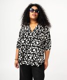Blouse imprimée à manches 3/4 femme grande taille noir