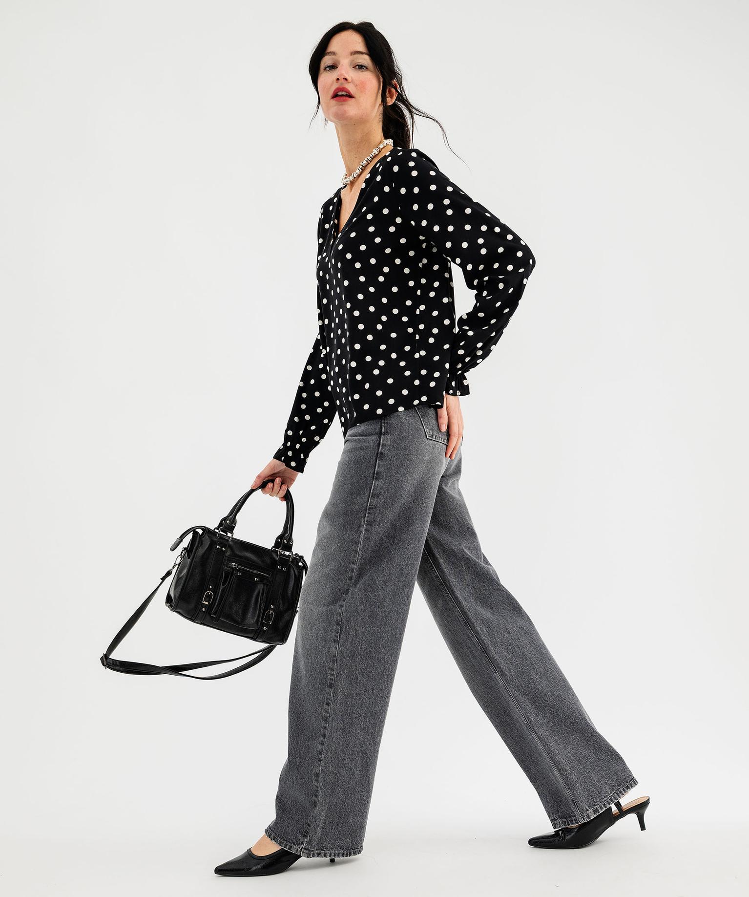 Blouse imprimée en viscose avec décolleté en V femme noir