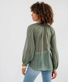 Blouse imprimée en voile avec empiècement froncé femme vert